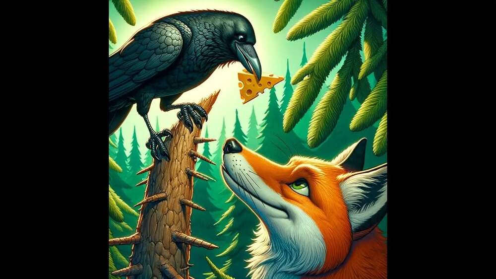 Рассказ от сотворенья мира. Обзаведясь головкой сыра, Месьё Ворон на ветвях завис, Но тут явился некий лис, Известный льстец и враг заклятый Ворон, прельщённый ароматом От пармезана в клюве птичьем, Он разразился дивным спичем: Как хороши Вы, о, Месьё! Клюв, перья, хвостик. То да сё! Вы - Феникс.... Далее